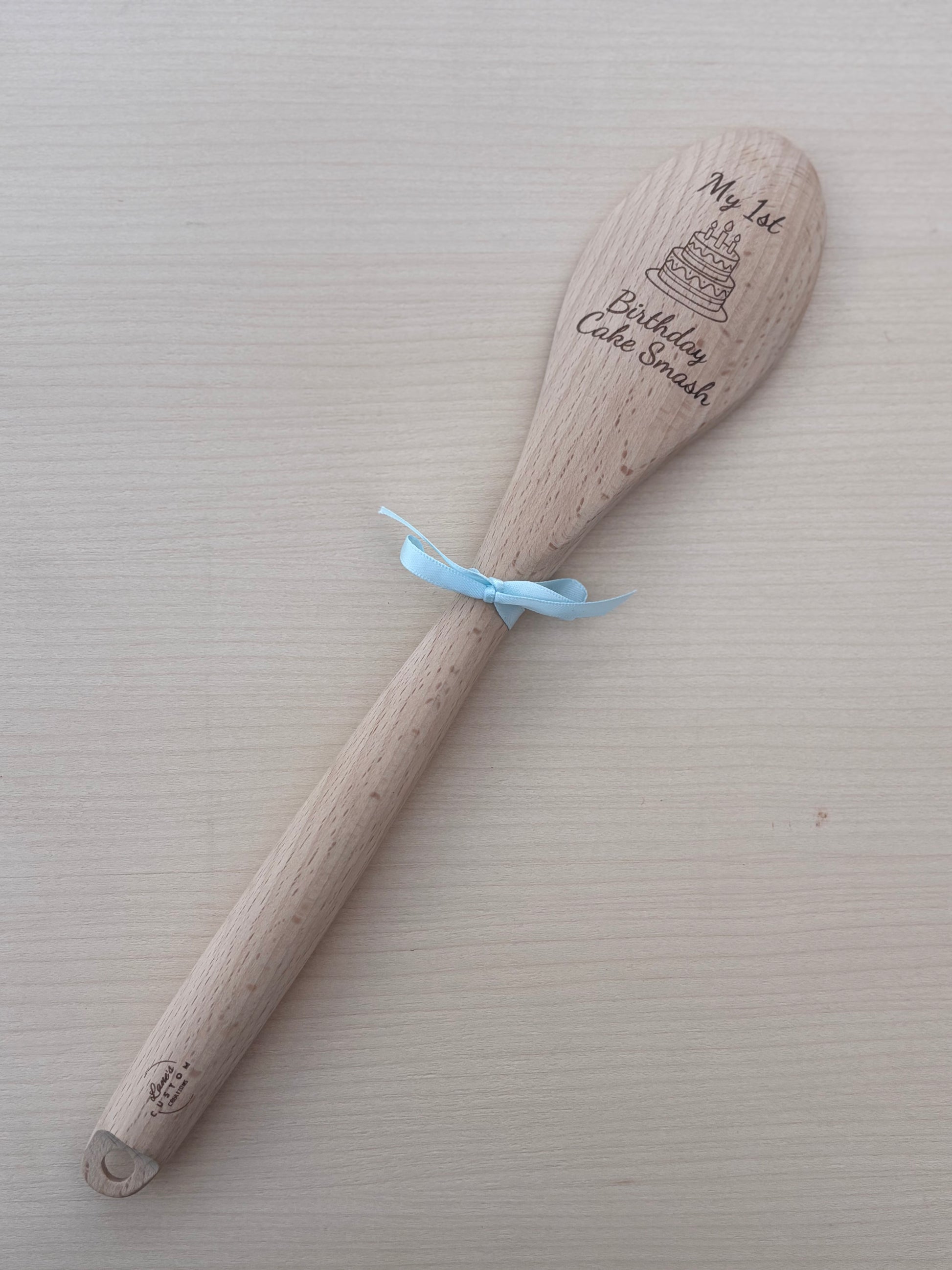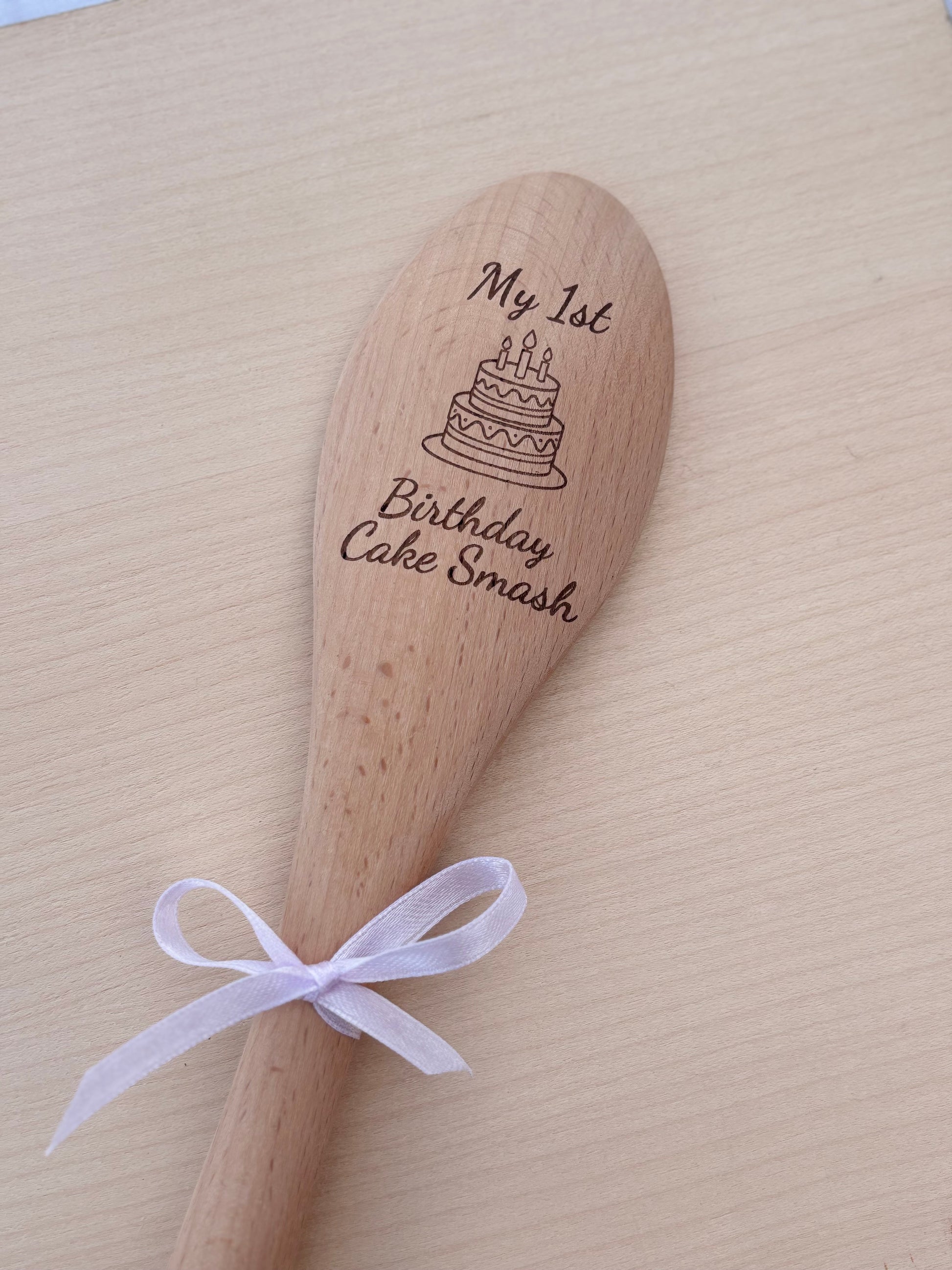 Celebrate your little oneโs first birthday in style with this engraved wooden cake smash spoon ๐๐ฅ