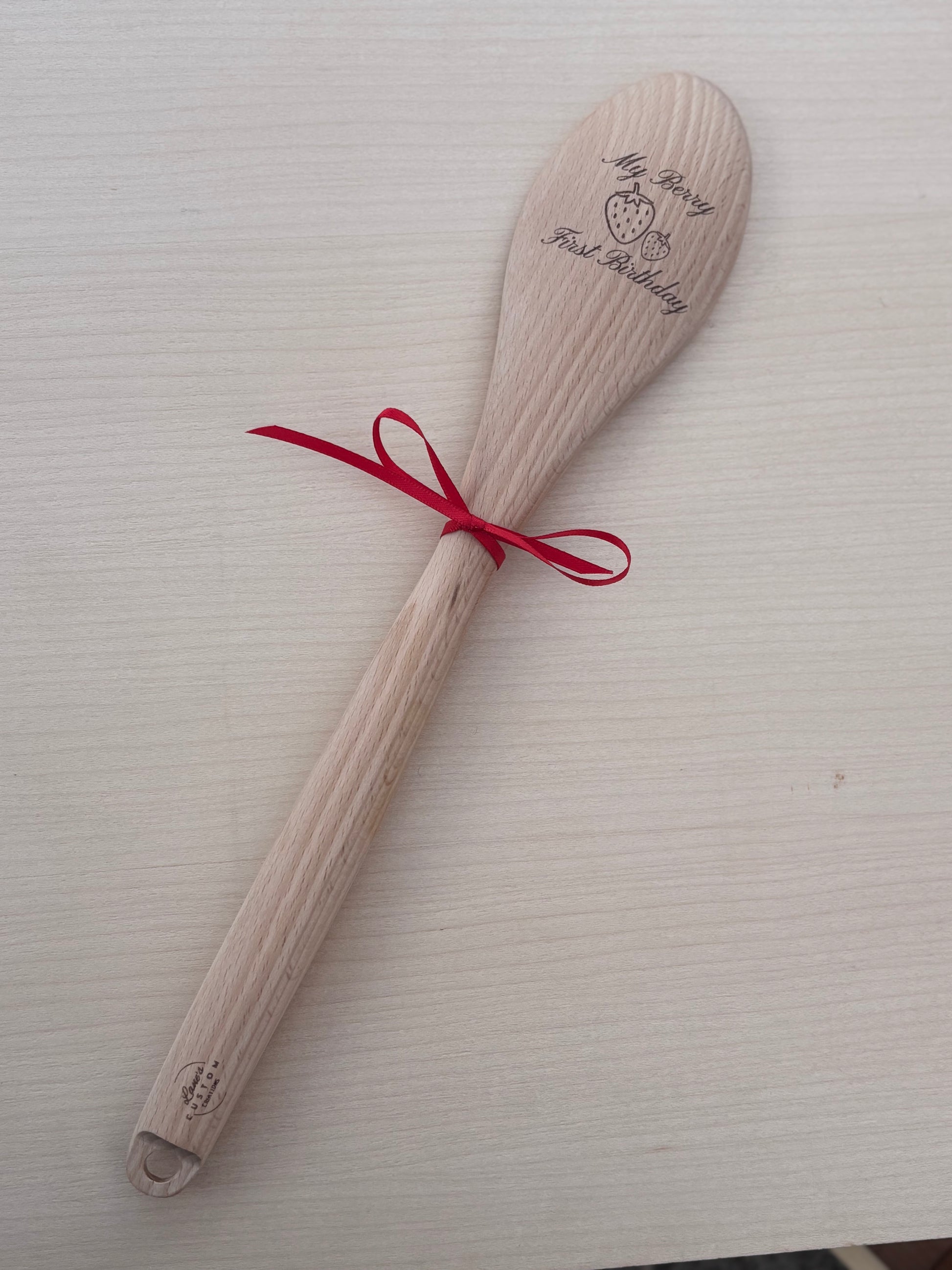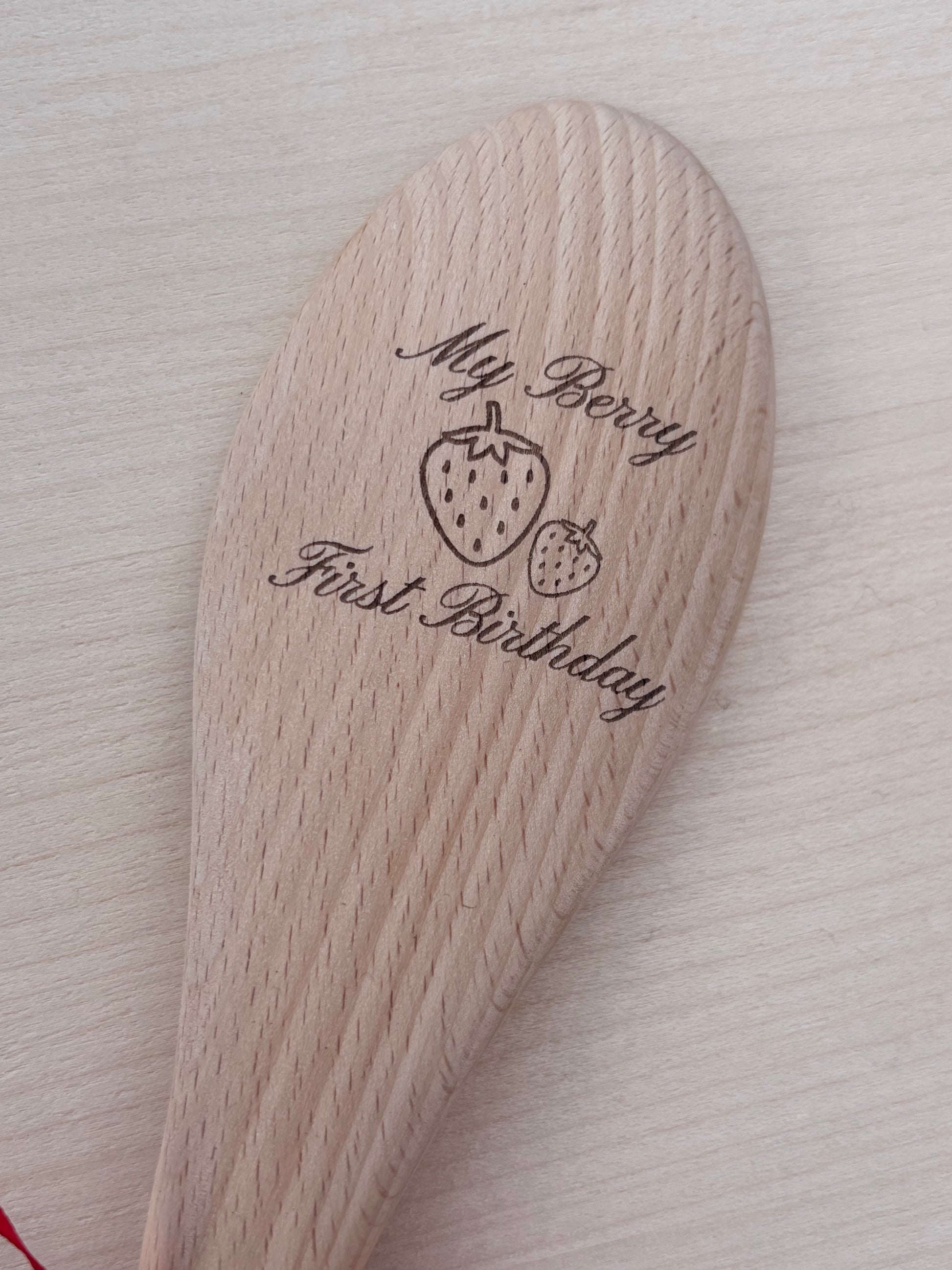 My Berry First Birthday Engraved Wooden Spoon | Strawberry Design Keepsake with Red Ribbon